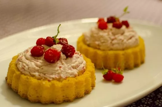 - Fromagepulveret, flødeskum og hindbær røres sammen til en ønsket konsistens opnås.