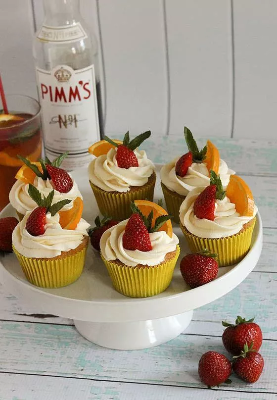 - Rør smør, sukker og Pimms sammen ved hjælp af en elektrisk mixer i 5-7 minutter, eller indtil let og luftigt.