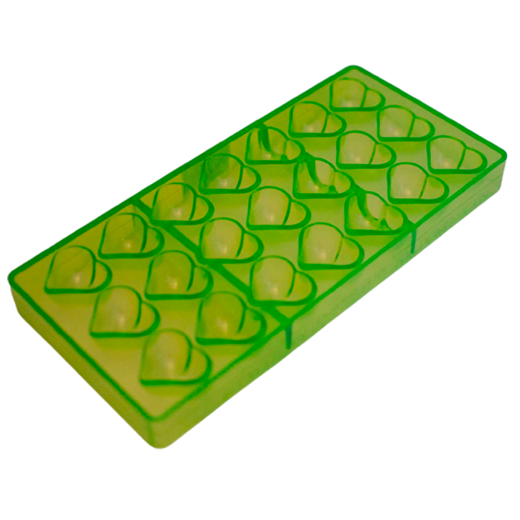 Hvis du brænder for bæredygtighed, kan du med fordel købe chokoladeforme fra Green Line. Green Line er en serie fra Chocolate World, og alle produkterne er lavet af 100% genanvendt polycarbonat. Disse chokoladeforme er også i hård plast, og de giver derfor blanke og skarpe chokolader.