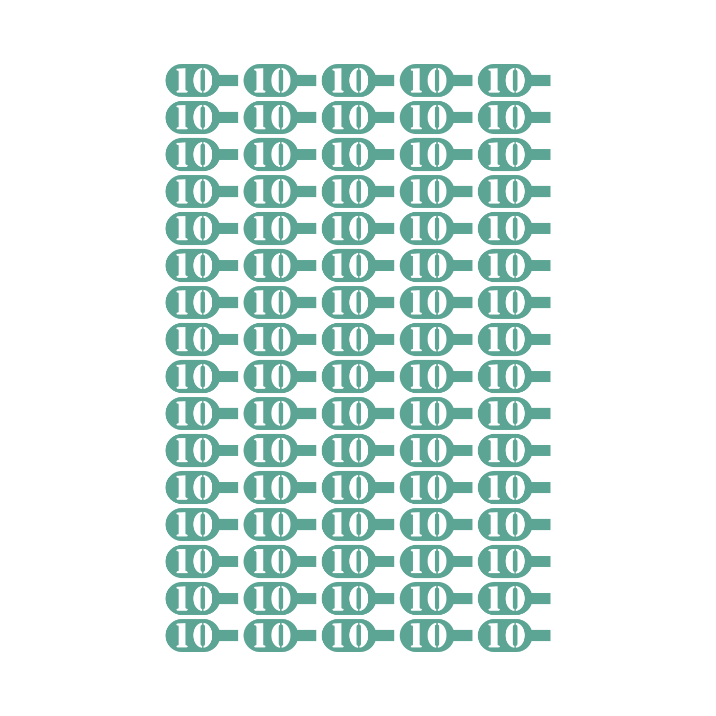 Ark med 80 fødevaregodkendte stickers med tallet 10.