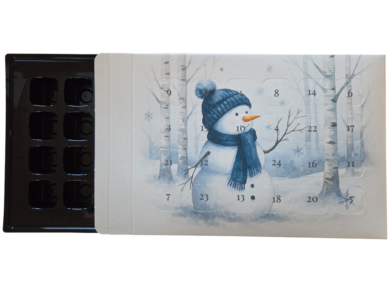 De 24 låger gemmer på afgrænsede rum der kan fyldes med chokolade/praliner, karameller, små gaver eller hjemmelavede lækkerier. Du kan også bruge kalenderen til kreative overraskelser som smykker eller små sæbestykker.