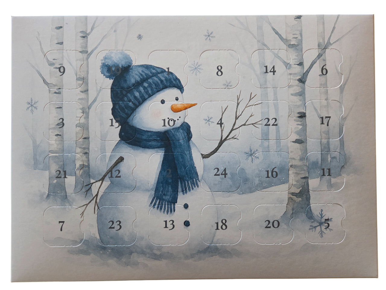 “En snemand i vinterlandskabet symboliserer barnlig glæde og leg i sneen. Jeg ville skabe en kalender, der vækker minder om sneklædte decemberdage og simple glæder.”