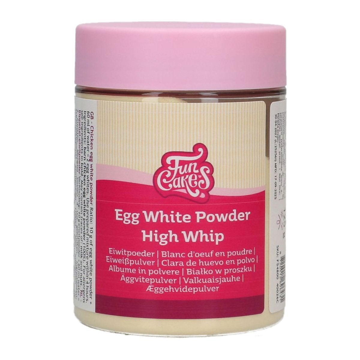 | Ingredienser: æggehvide (100%) (tørret, HØNSEÆG).For allergener, se ingredienser med FREMHÆVET skrift. Kan indeholde spor af: MÆLK, NØDDER. Dette produkt er halal. | ![]() |