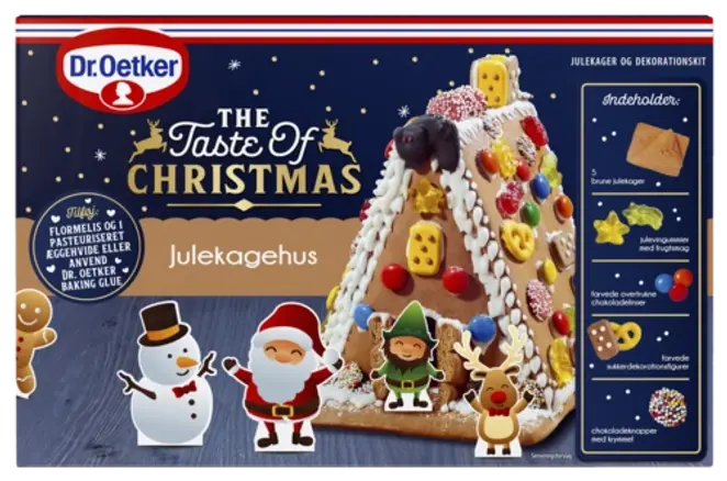 Ingredienser (Farvede sukkerdekorationsfigurer) sukker, glukosesirup, gelatine, syre (citronsre), stivelse, fortykningsmiddel (arabisk gummi), salt, farver (curcumin E150d, rødbedefarve, E172), hydrolyseret MÆLKEPROTEIN, aroma, overfladebehandlingsmiddel (bivoks, hvidt og gult). Kan indeholde spor af ÆG.