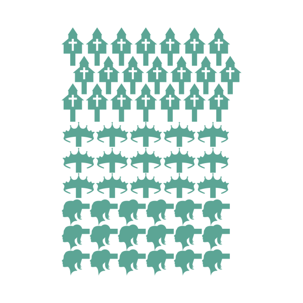 Arket indeholder 54 stickers, hver i varierende størrelser op til ca. 30 × 25 mm.