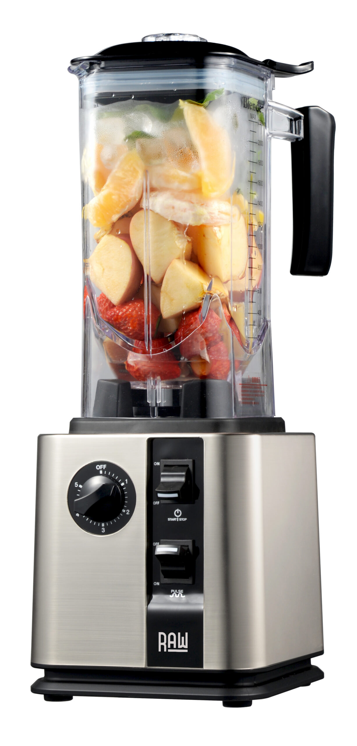 Med RAW Fuel Blender får du en professionel og kraftfuld blender, der er skabt til at klare selv de hårdeste opgaver i køkkenet. Med en motor på hele 1800 watt og 2,5 hestekræfter, samt 30.000 omdrejninger i minuttet, får du en blender, der uden problemer kan mose, hakke, purere og blende alt fra frosne bær og nødder til supper og varme drikke.