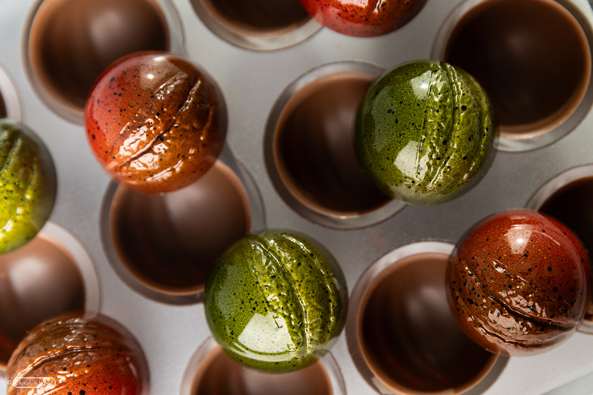 Magnetisk: Disse forme har en aftagelig bagplade af metal, hvor i der kan indsættes et transfersheet til overførelse af print til chokladen