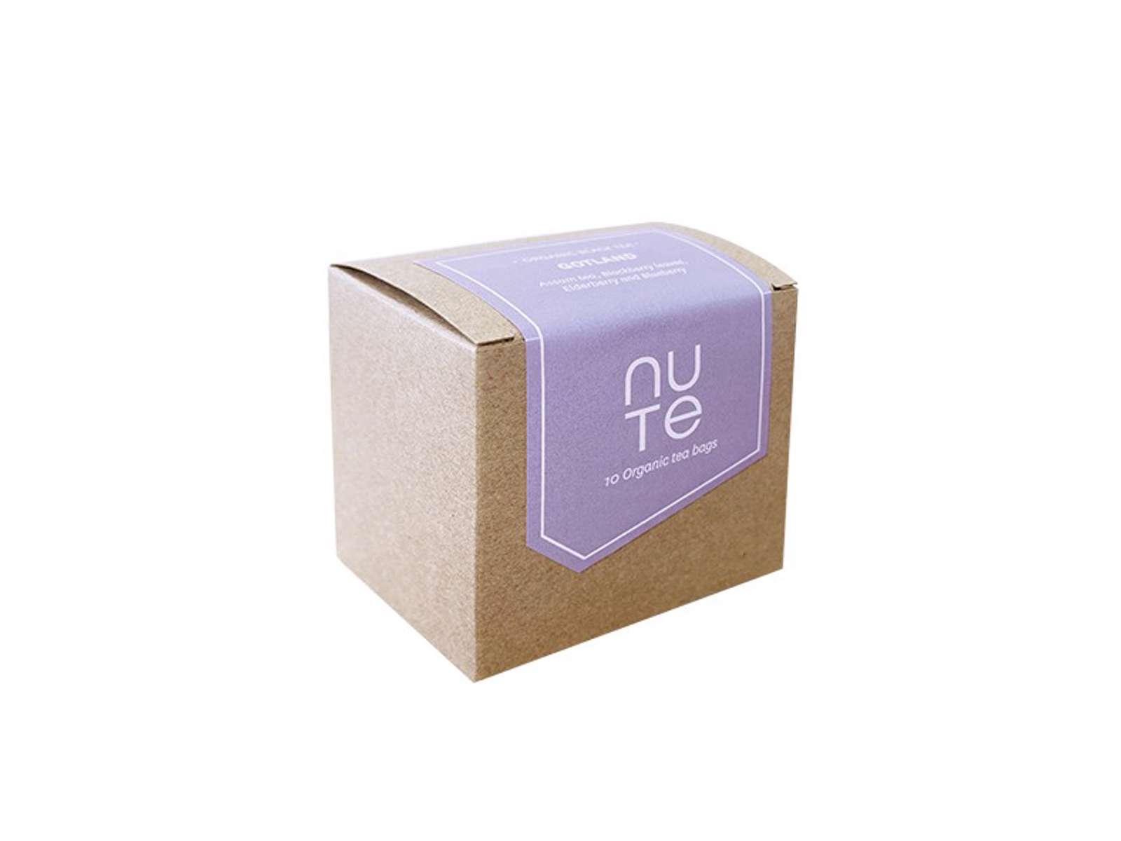 Lad dig forføre af smagen af sensommer med NUTE Gotland – en økologisk sort Assam te med brombærblade, hyldebær og blåbær.