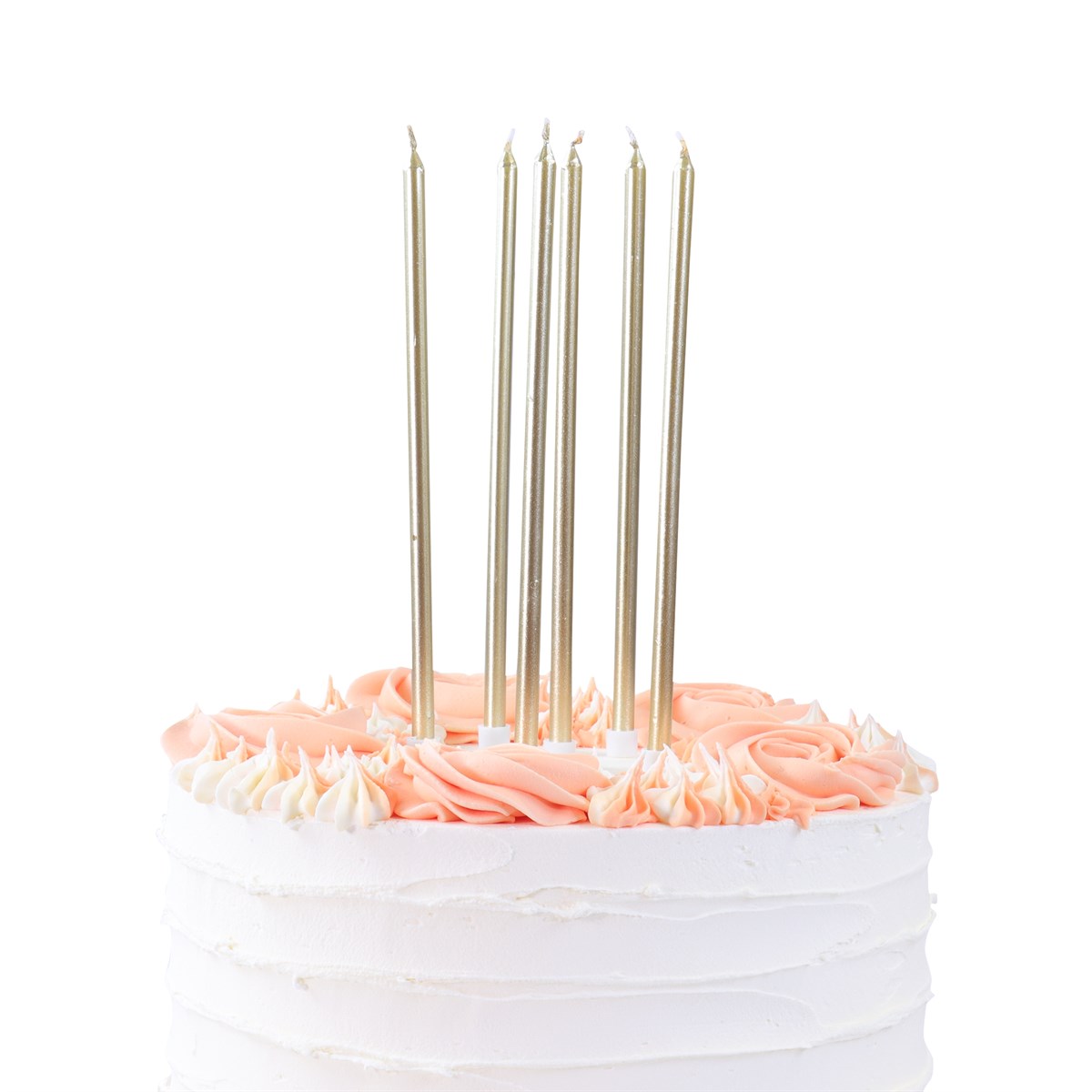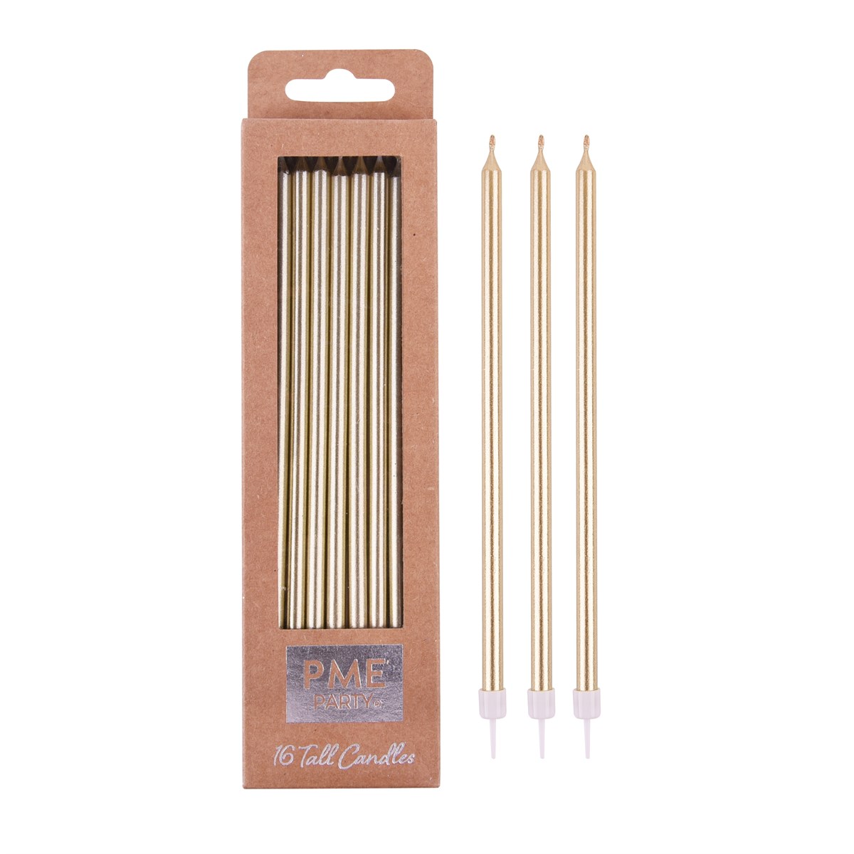 Skab et elegant og iøjnefaldende udtryk på din festkage med disse ekstra høje guldlys fra PME. Med en højde på hele 18 cm giver de et eksklusivt og stilrent look, der passer perfekt til fødselsdage, bryllupper og andre særlige lejligheder.
