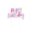 Flot kage lys med teksten “Happy Birthday” i farven pink pastel med hvid baggrund – perfekt til fødselsdagskagen.