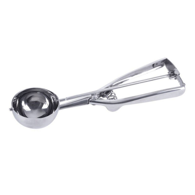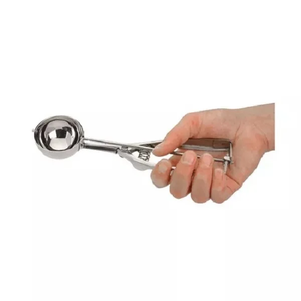 Praktisk og solid isske i rustfrit stål med indbygget fjederfunktion, som gør det nemt at frigøre iskuglen fra skeen. Mekanismen sikrer en jævn og ubesværet servering, uanset om du arbejder med is, sorbet eller andre faste desserter.