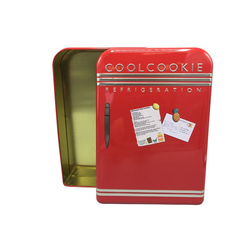 Fremstillet af metal som er belagt med et tyndt lag tin indvendig og en lak udvendig.