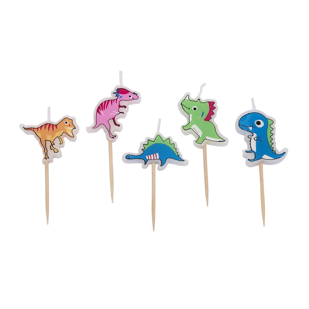 Skal du holde dinosaurfest? Så må disse farverige kagelys med dino-tema simpelthen med på kagen! Perfekte til cupcakes, hvor hvert barn kan få sit eget lys at puste ud – eller brug dem samlet på en stor fødselsdagskage for et festligt og farverigt look.