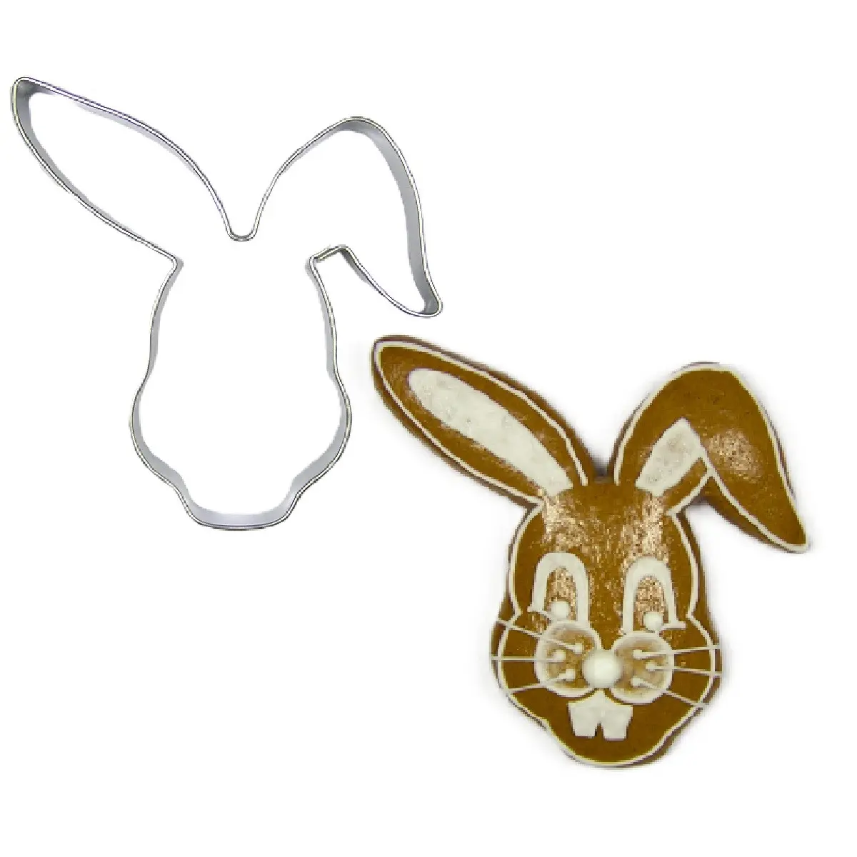 BrandNewCake Rabbit Head Cookie Cutter er en udstikker i rustfrit stål formet som et sødt kaninhoved med lange ører. Med en størrelse på 7,5 cm giver udstikkeren tydelige og genkendelige former, som er perfekte til både småkager og kagedekoration.