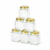 Pakke med 6 stk. praktiske opbevaringsglas – perfekt højde til krydderihylder og lave skuffer.