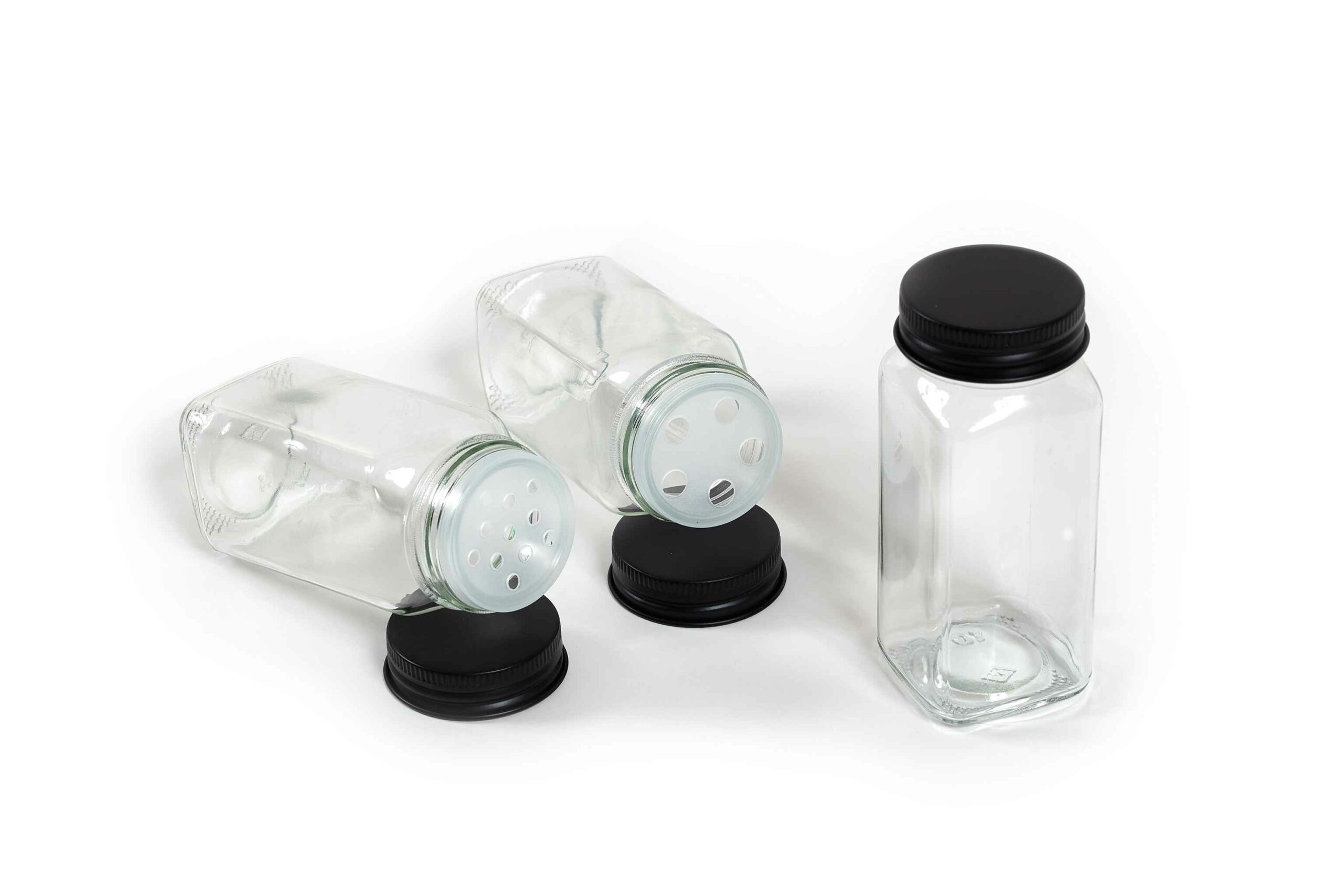 Glassene egner sig til opbevaring af krydderier, urter og andre tørvarer, og med de sorte skruelåg får du et ensartet og moderne udtryk i dit køkken.