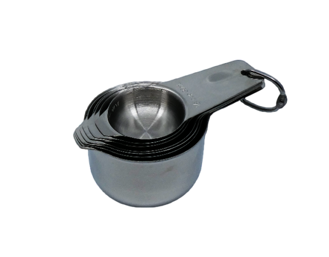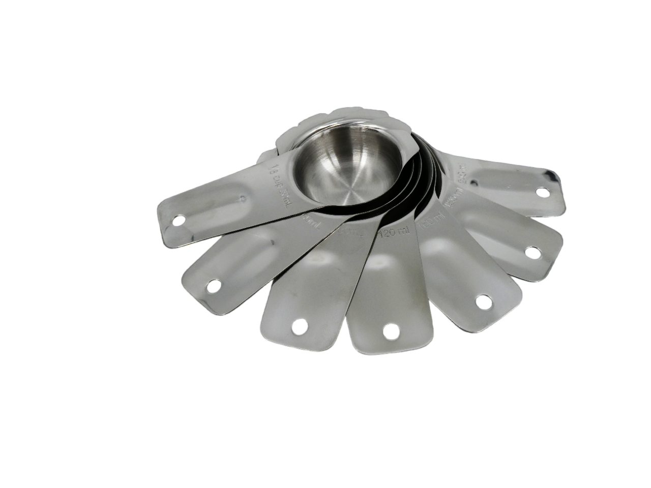 Skeerne har følgende mål: 30 ml, 60 ml, 80 ml, 120 ml, 160 ml, 180 ml, 240 ml – som i Cups er 1/8, 1/4, 1/3, 1/2, 2/3, 3/4 og 1/1 cups.