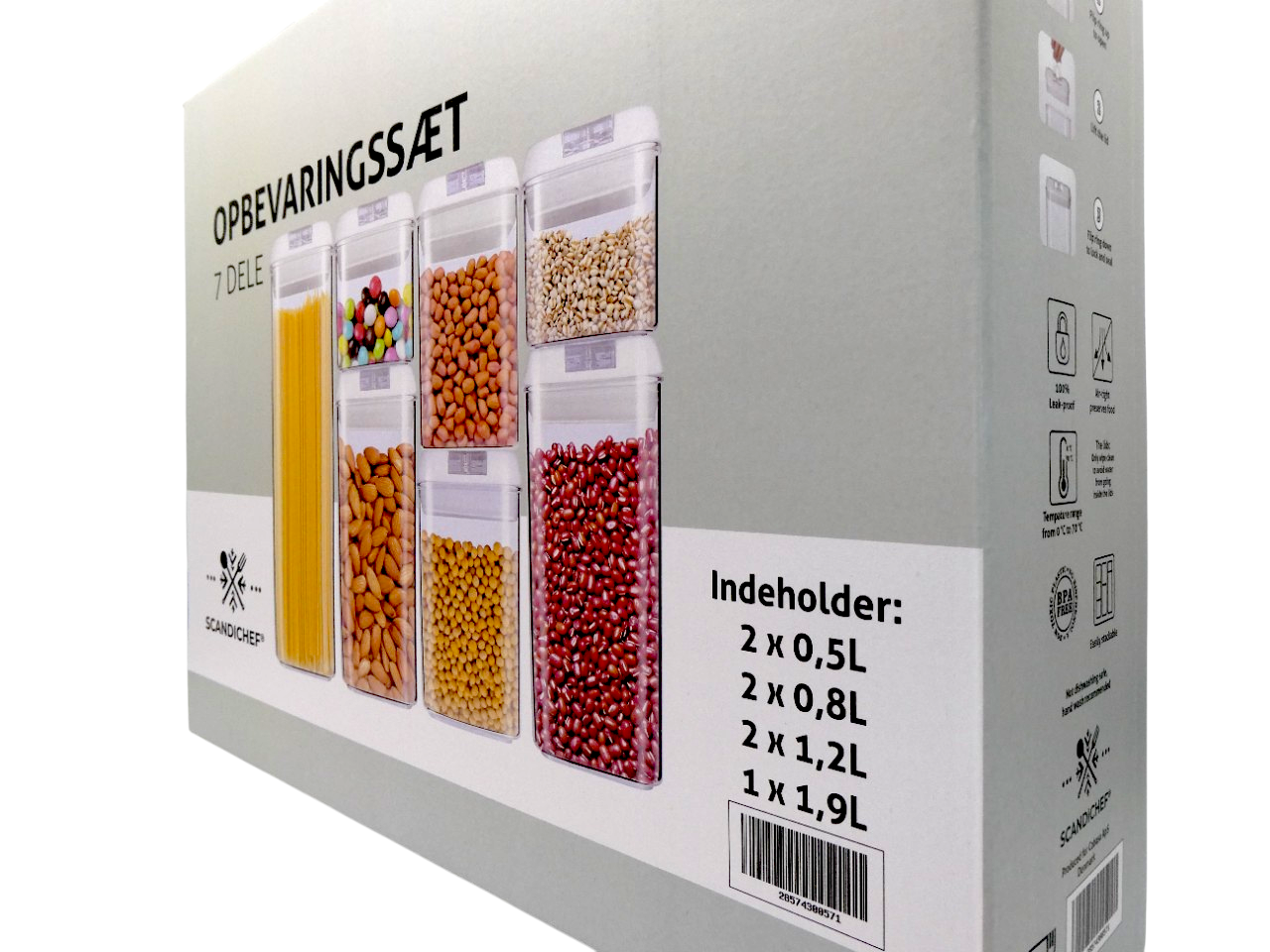 Bøtterne er fremstillet i robust og holdbart materiale, der kan opbevare forskellige typer mad, såsom kerner, kaffe, pasta, mel, sukker og meget mere.