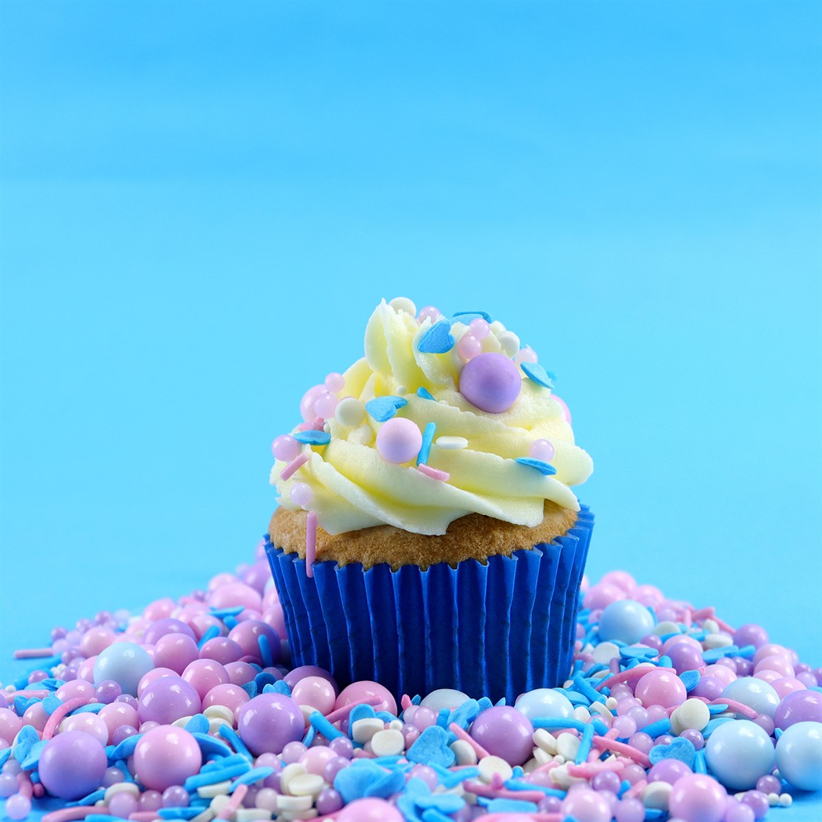 Gør dine kager farverige og fulde af sjov med Out the Box Sprinkle Mix – Bubble Gum fra PME. Denne livlige og legende blanding er fyldt med farvestrålende sukkerfigurer og pastelfarver inspireret af klassisk tyggegummi – perfekt til børnefødselsdage, babyshowers og kager, der bare skal sprede glæde.