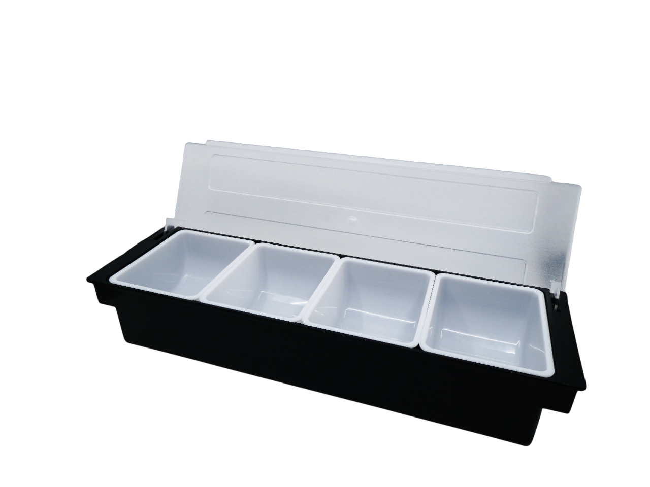 Der er monteret et låg, så dine toppings er godt beskyttet, efter de er klargjort, og før de skal bruges.