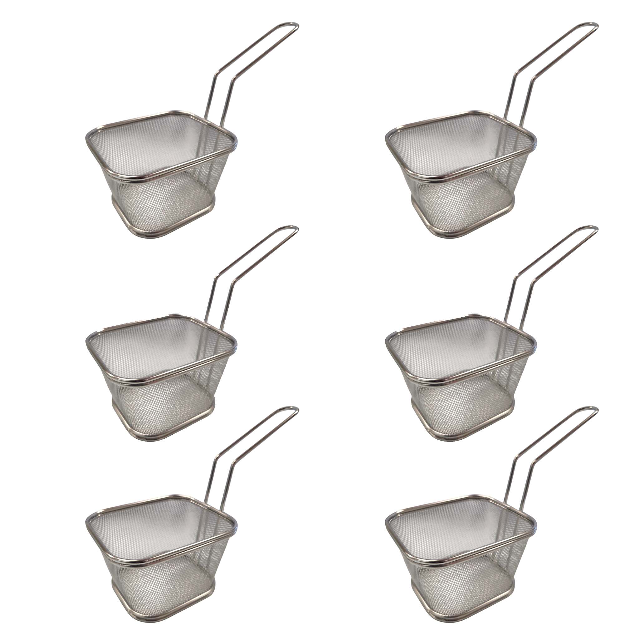 6 stk. Pommes frites kurv / friturekurv i rustfrit stål – 10×8 cm