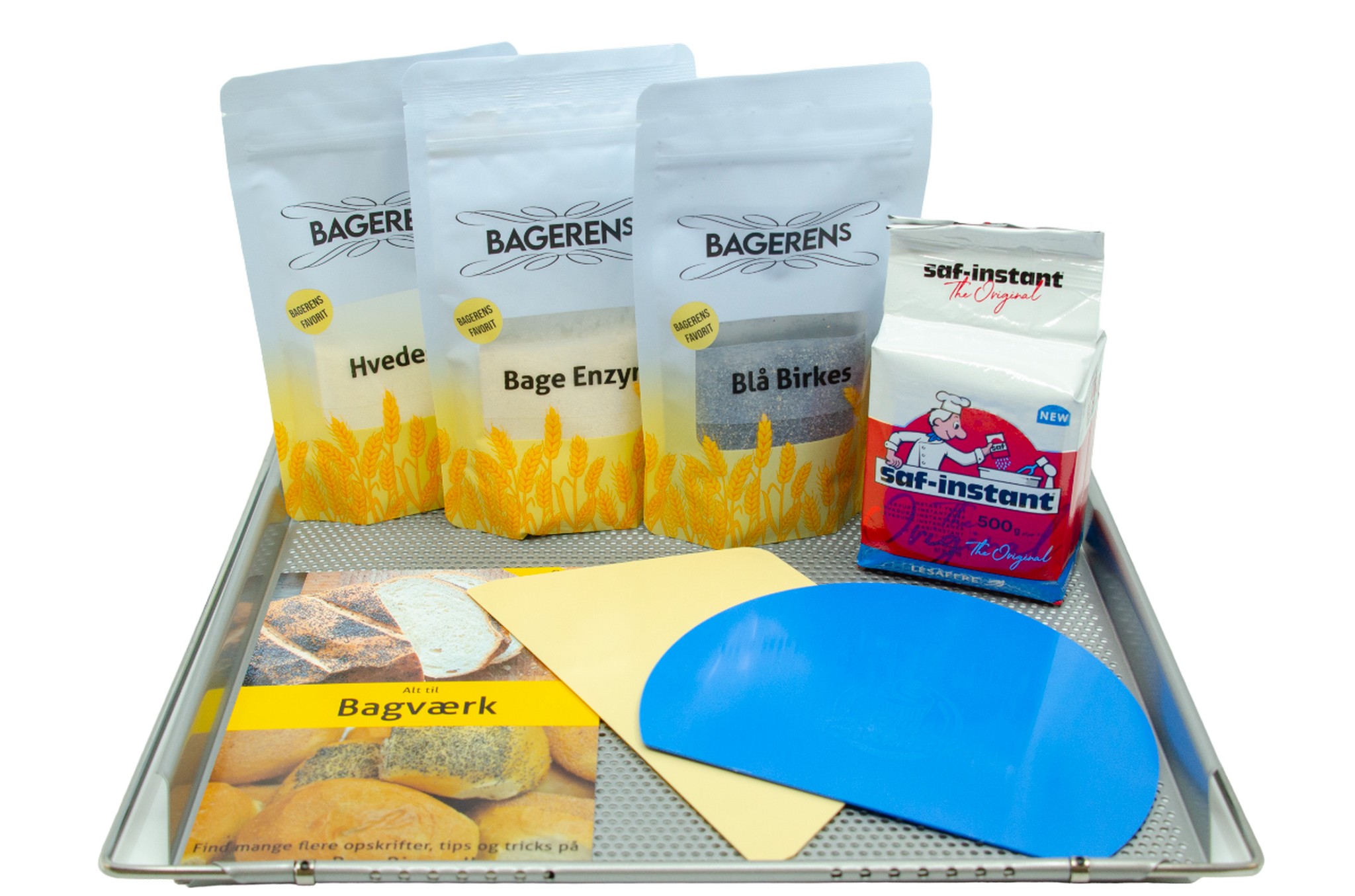 Startpakke med de specielle ingredienser du skal bruge for at komme i gang med rundstykker – vores gode opskrift finder du HER