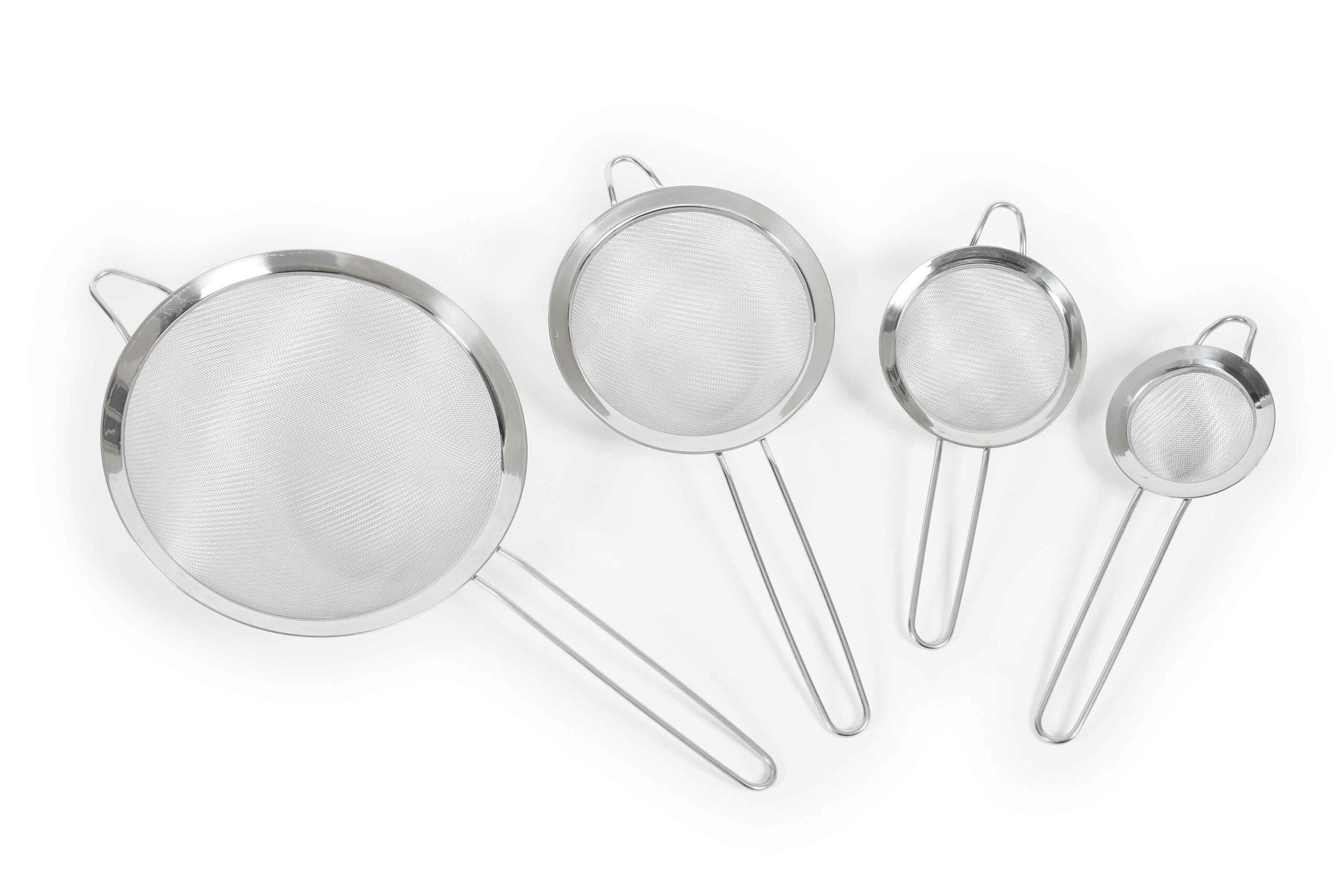 Sigtesæt i premium kvalitet med 4 praktiske størrelser – perfekt til både små og store opgaver i køkkenet. Ideel til sigtning af mel, flormelis, kakao og andre tørre ingredienser, så du opnår et let og ensartet resultat.