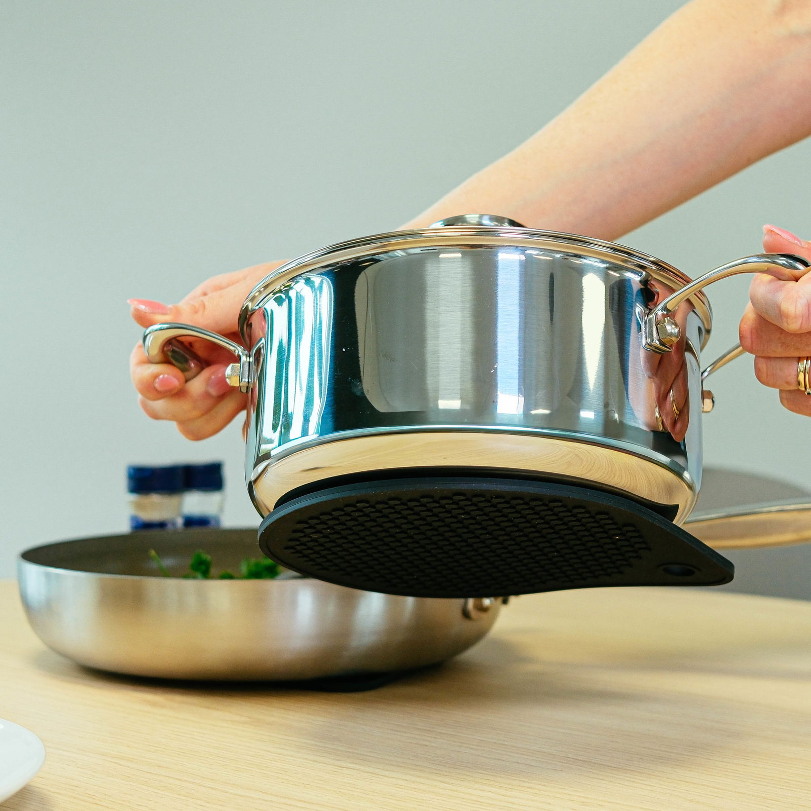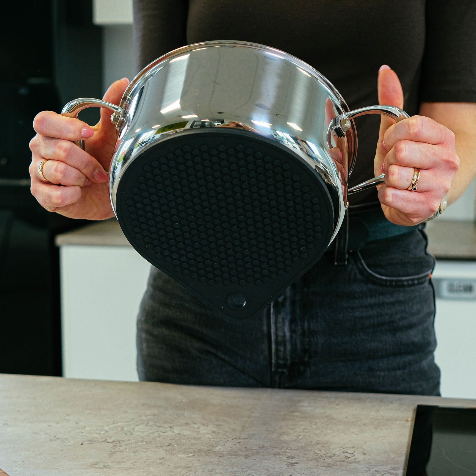 Den magnetiske funktion gør det muligt at tage gryden direkte af blusset og placere den sikkert på bordskåneren uden at skulle holde undervejs. Det giver ekstra sikkerhed og mindsker risikoen for varmeskader på bord og køkkenflader.