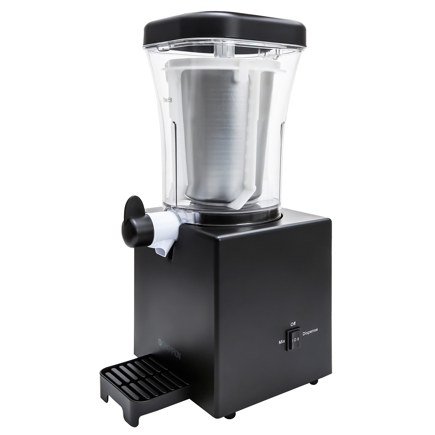 Slush N’ice fra Champion er udviklet til nem og hurtig tilberedning af slush og andre iskolde drikke. Den dobbelte aluminiumsbeholder med automatisk omrører sikrer ensartet, luftig konsistens, mens den praktiske tappekran gør det nemt at servere direkte i glasset. Maskinen er ideel til både børn og voksne og kan bruges med alt fra sodavand og juice til færdigblandede slushmix.