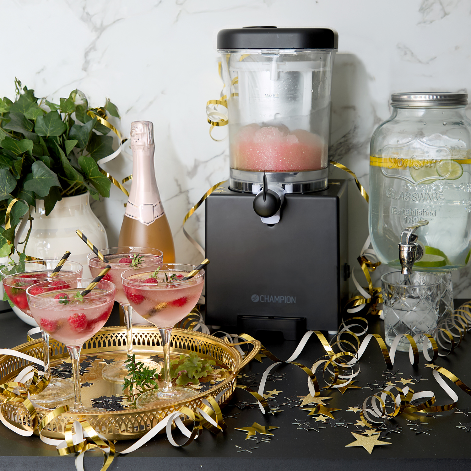 At lave forfriskende slushice eller cremet nicecream derhjemme med Champion SL400 er nemt og sjovt – du skal blot bruge din yndlingsvæske, isterninger og salt: