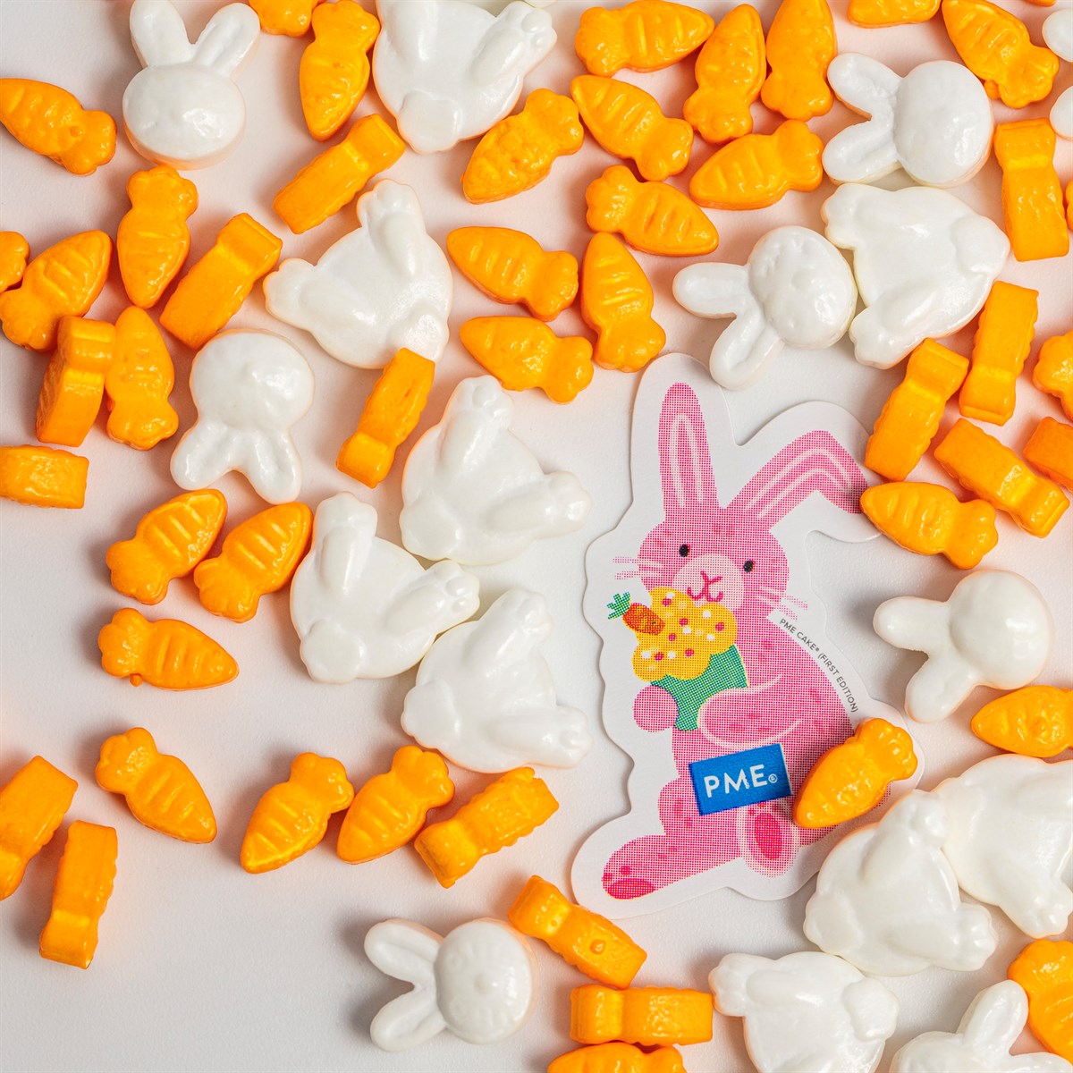 Giv dine påskebagværk et festligt og legende udtryk med PME Cake Bunnies & Carrots Sprinkle Charms (25g).