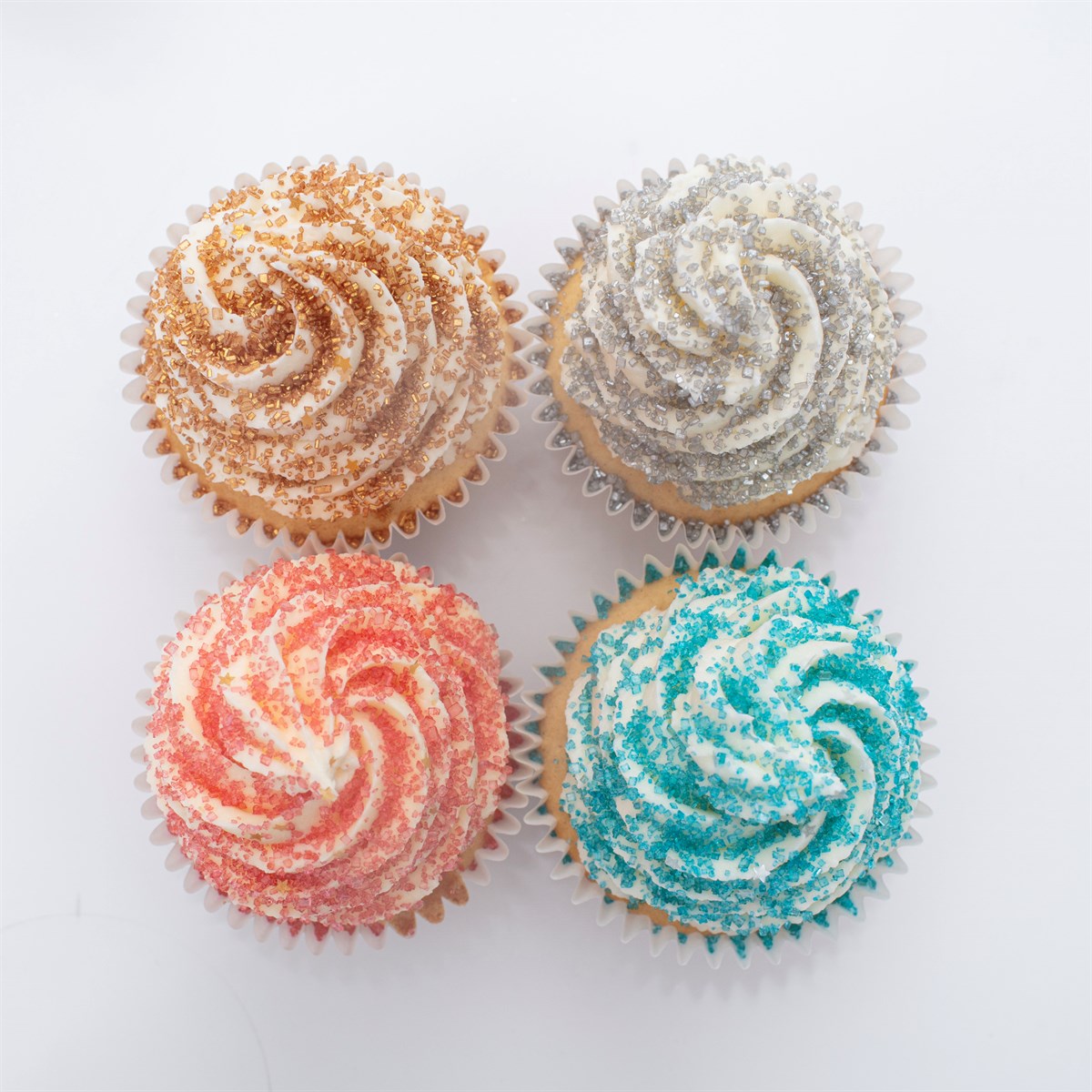 Sættet indeholder fire flasker spiseligt glittersukker i rød, grøn, sølv og guld – klassiske julefarver, der giver dine desserter et elegant og festligt udtryk. Drys over cupcakes, småkager, doughnuts, is, desserter og meget mere, og se dine kreationer funkle på få sekunder.