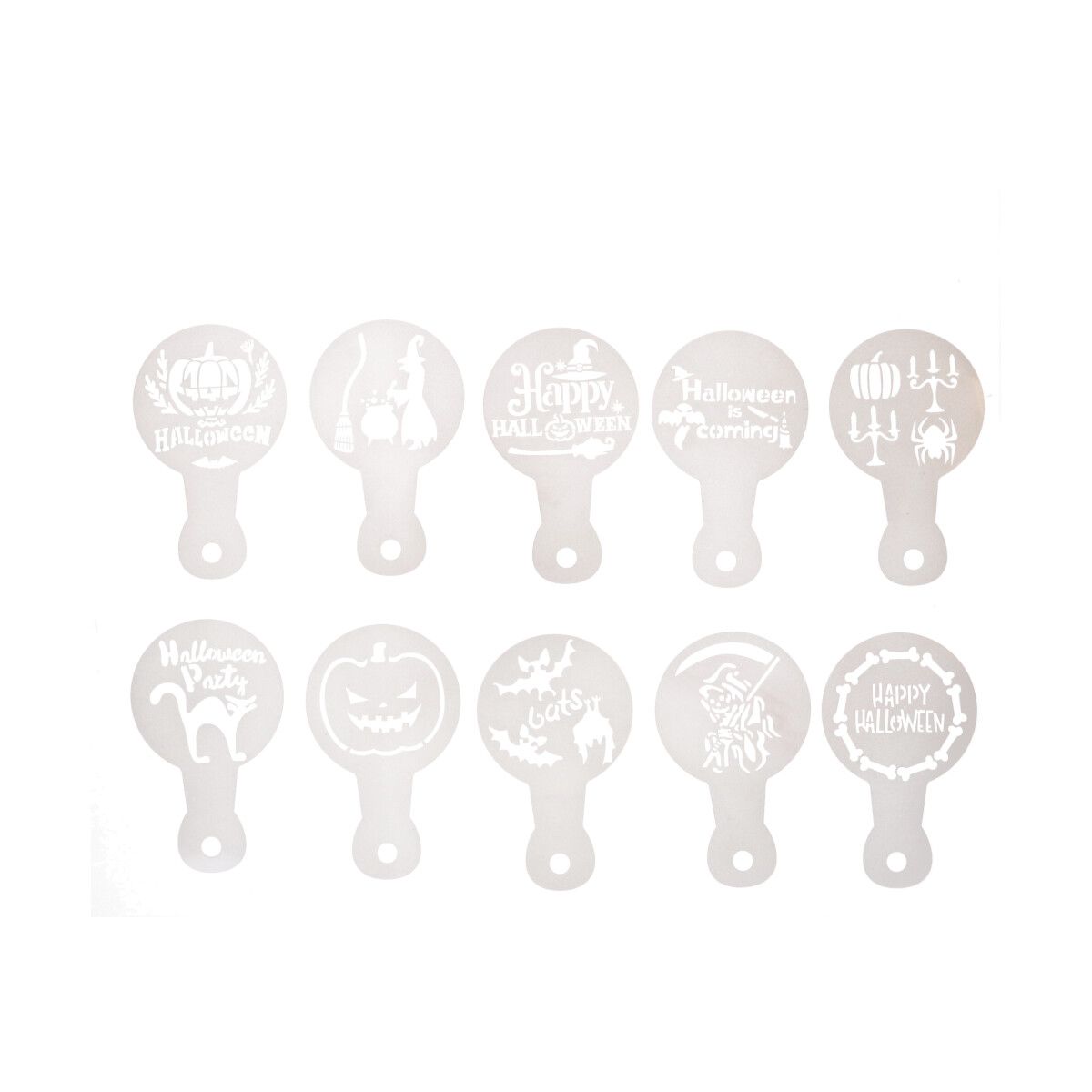 Skabelonerne er perfekte til brug med royal icing, kakaopulver, flormelis, farvespray eller airbrush og gør det enkelt at skabe imponerende detaljer på ingen tid. Med dette sæt har du en stencil til enhver Halloween-anledning.