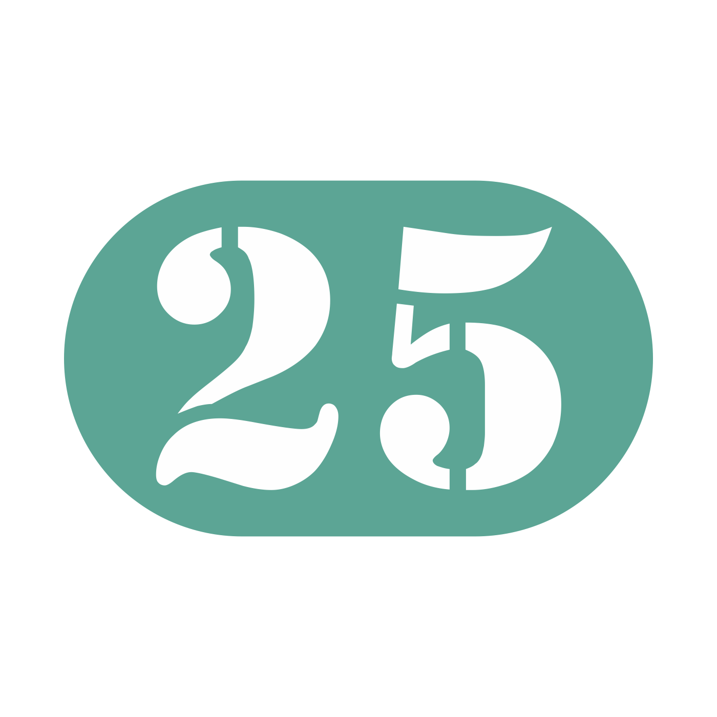 Ark med 80 fødevaregodkendte stickers med motiv tallet 25.