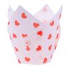 24 stk. hvide tulipan muffinsforme i superkvalitets fedtafvisende papir med  et rødt, prikket hjertemønster.